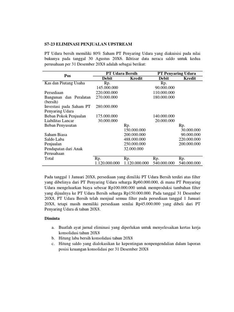 Apakah mungkin pt astrea menanam investasi pada perusahaan dia sendiri. Jika induk perusahaan menjual tanah ke anak perusahaan dengan harga lebih tinggi rp 5 000 000 dari biaya perolehan tanah tersebut ayat jurnal kertas kerja diperlukan. Neraca konsolidasi diatas disusun oleh pt astrea bukunya pt astrea untuk menyatukan laporan keuangan pt nick dan pt astrea yang mulanya terpisah.